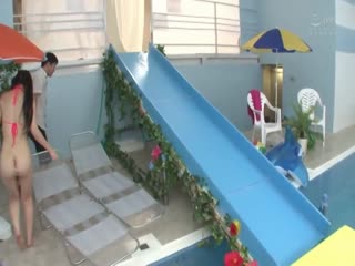 Overview: ハケ、ローター、電マ、手足を拘束されて必死でイキ我慢!イッてしまうとそのままの恥ずかしい姿でウォータースライダーの罰!マ○コ全開水しぶきを上げてプールにドボン!恐怖と恥ずかしさで悲壮感あふれる表情がエロい!ズブ濡れびしょびしょでフェラ、SEX!騎乗位でハメたままウォータースライダーアクメ!
